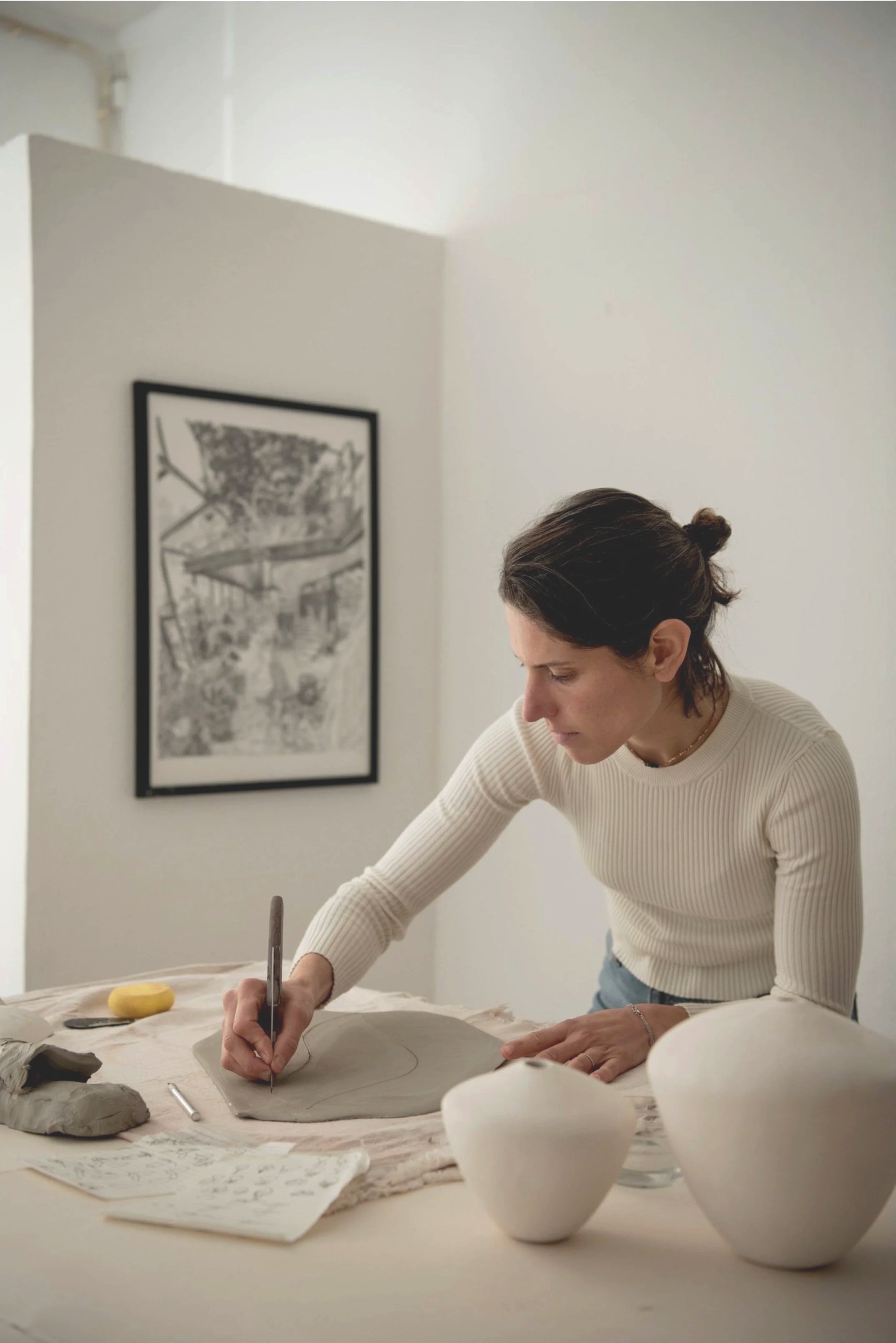 The studio classes focus on two foundational aspects of ceramics: shape and texture. They are designed to guide you towards a more intentional practice, with a small number of participants (6 ceramicists max.), practical suggestions, and deliberate constraints.