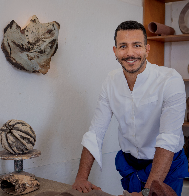 His designs are organic and textured, and draw inspiration from Egyptian heritage, Islamic geometry, and the varied landscapes of Portugal and Europe.