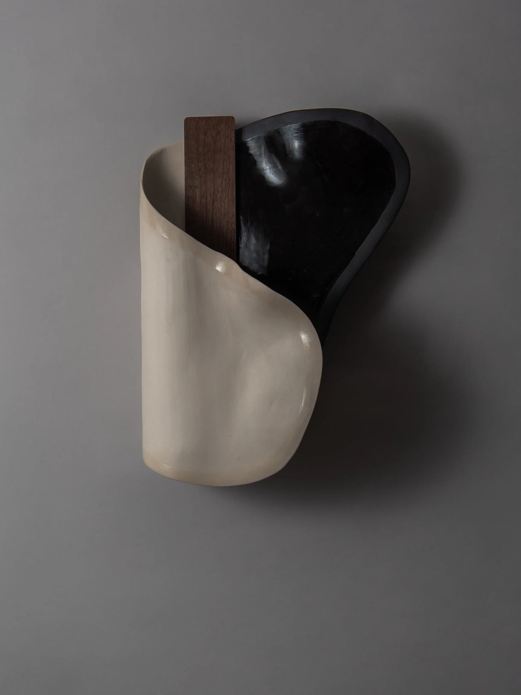 Abundance is a collection of ceramic and wood wall sculptures that originated in a private commission for a French home. Each piece is made-by-hand and designed with a sense of movement, exploring the intimate connection between light and shadows through a combination of wood and ceramics. Consult our catalog to learn more.